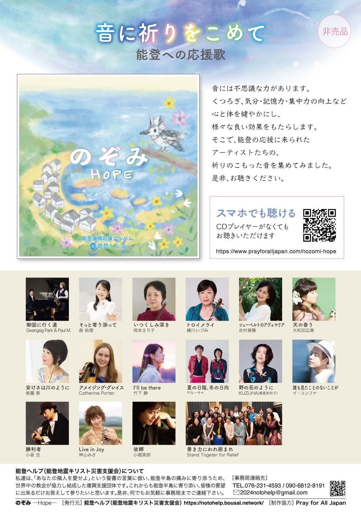 能登半島を訪れたゴスペルCCMアーティストたちの、祈りと希望(のぞみ)が込められた復興応援アルバムが完成!!